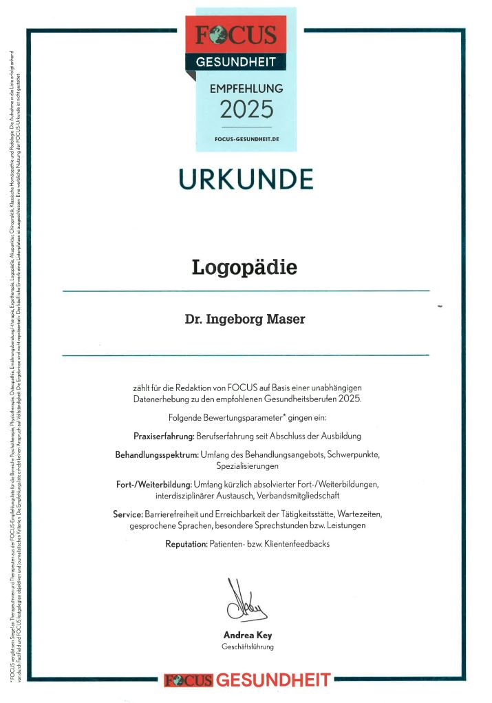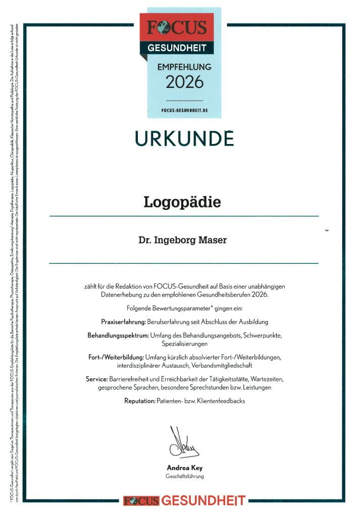 - Zertifizierte Lee-Silverman-Voice-Treatment Therapeutin (LSVT)